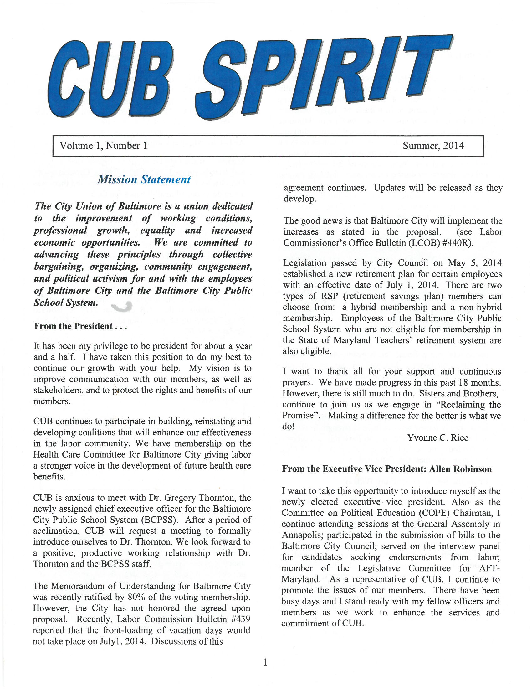 The Summer 2014 edition of the City Union of Baltimore newsletter, "CUB Spirit" is available. If you haven't received a copy, pick one up at the CUB office at 2117 N Howard Street, Baltimore, or click here to download a copy.