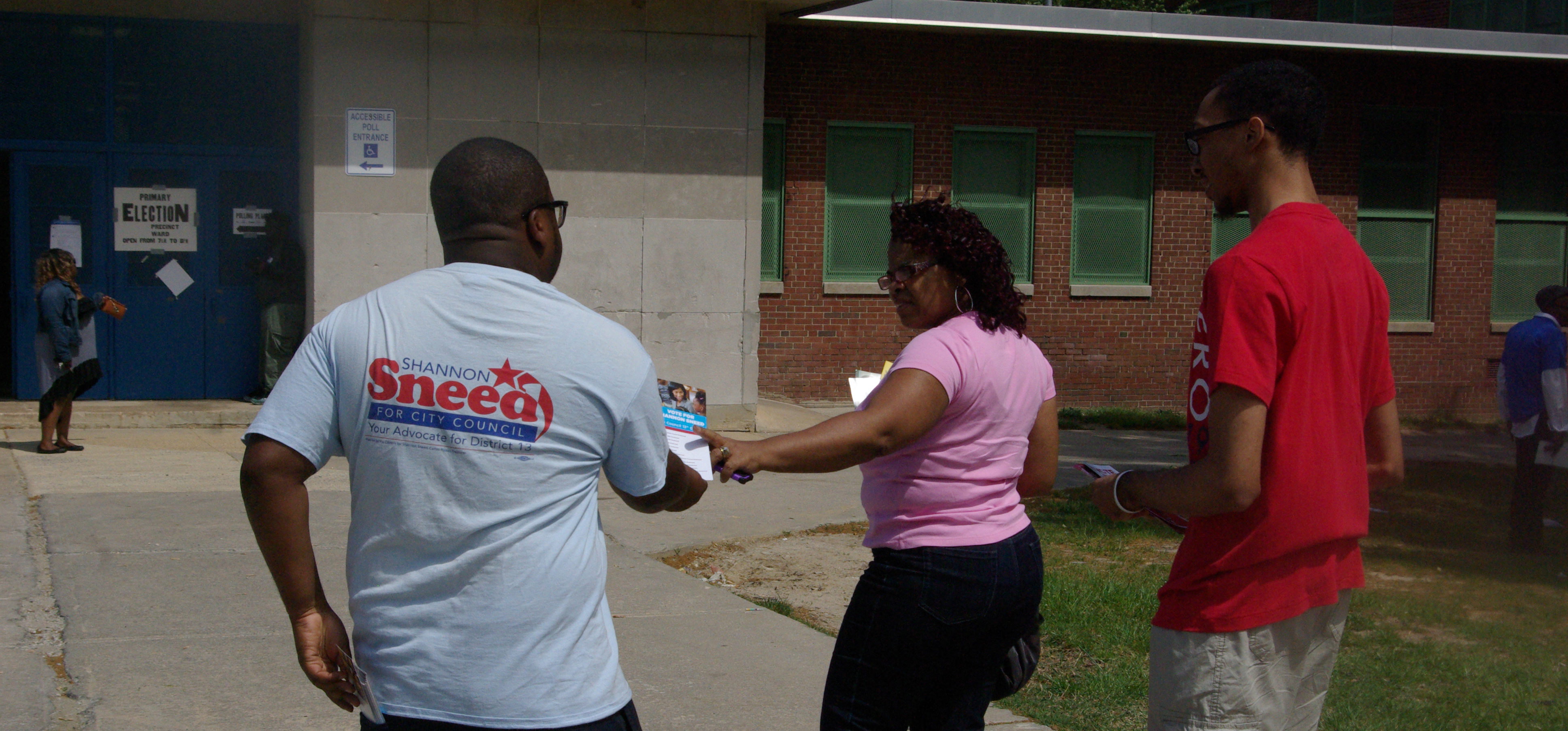 Union members, staff, and activists volunteered at strategic positions to support candidates in contested races that face low turnout. Shannon Sneed had a strong presence at polling locations to show support for her. She was endorsed by AFT-Maryland, and members went on labor walks to get out the vote for her.